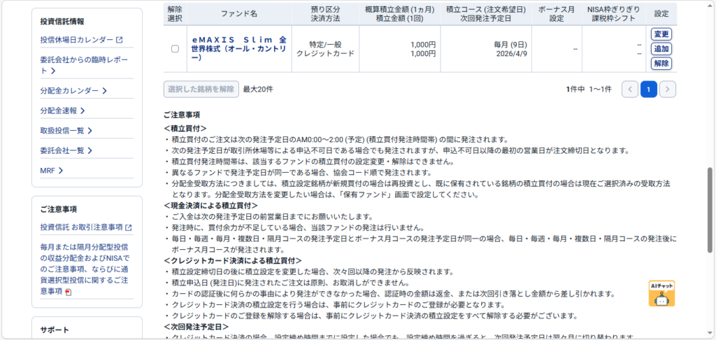 SBI証券で設定したクレジットカード積立。
