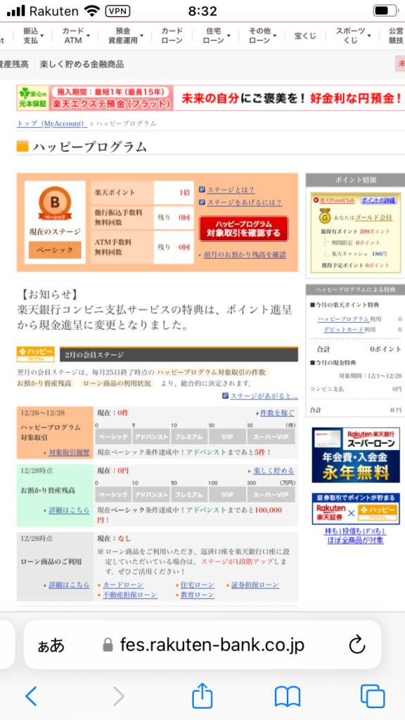 ハッピープログラムは、楽天銀行(マネーブリッジ連携口座)で